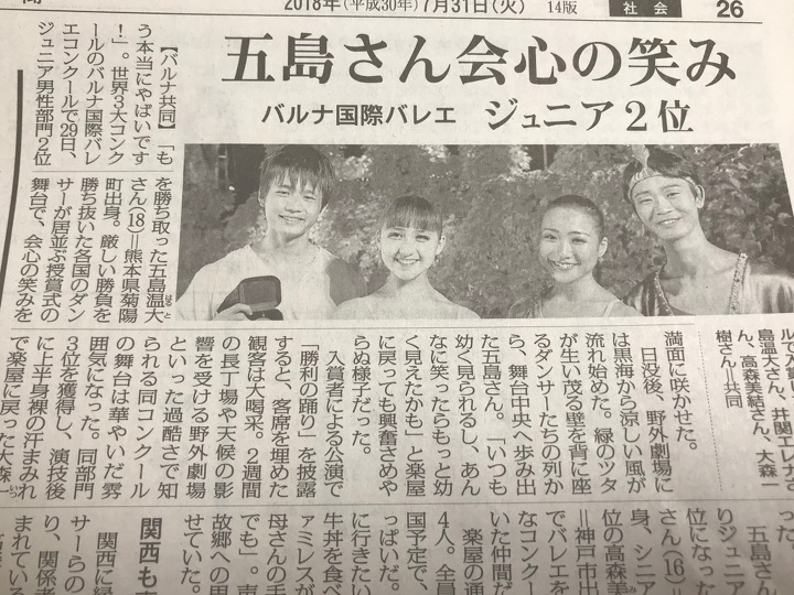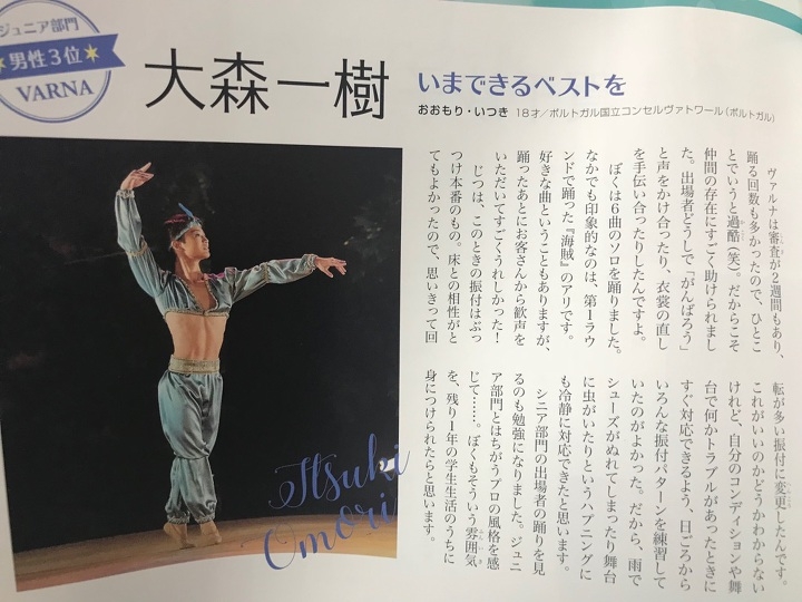 またバルナ国際コンクールで入賞した京都バレエ専門学校高等課程卒業の大森一樹君の記事がクララ10月号に掲載されました!